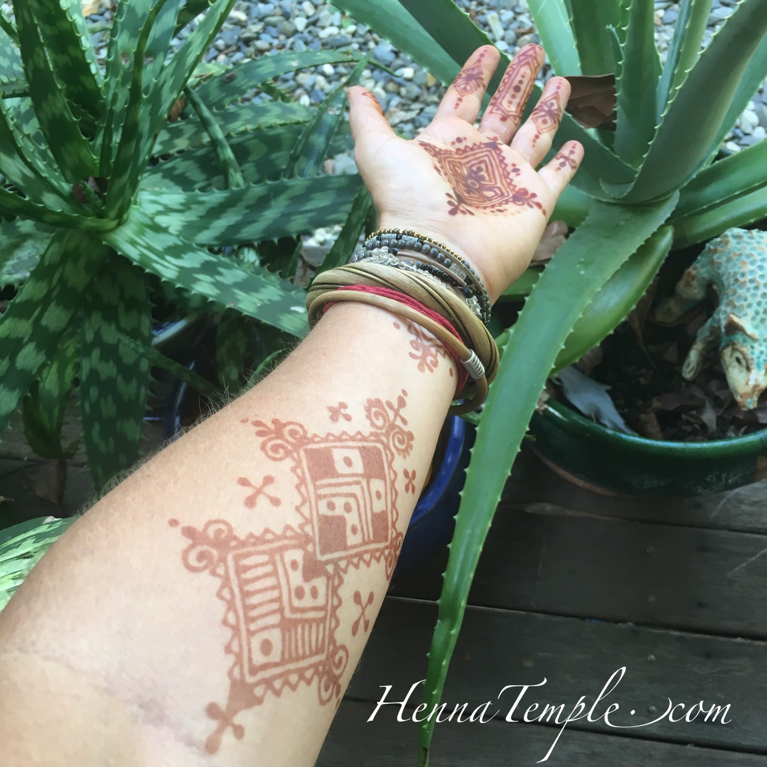 Henna Temple uses only organic henna paste that is personally mixed by Jillian and applied freehand as a temporary tattoo on your skin that lasts 1-3 weeks.