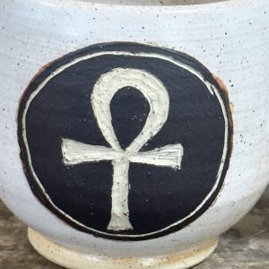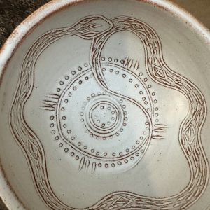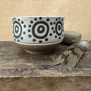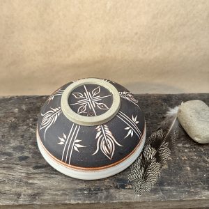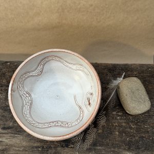 OUT OF STOCKSmall Bowl in Sandstone white with Peacock feather