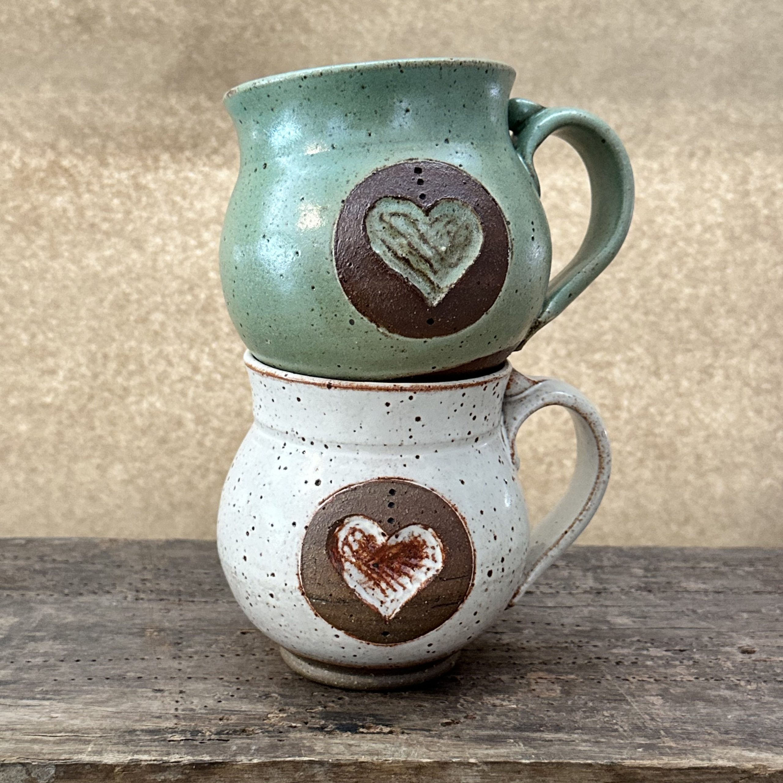 Each mug is made by my hands and may have slight differences. This is the beauty of handmade pottery.