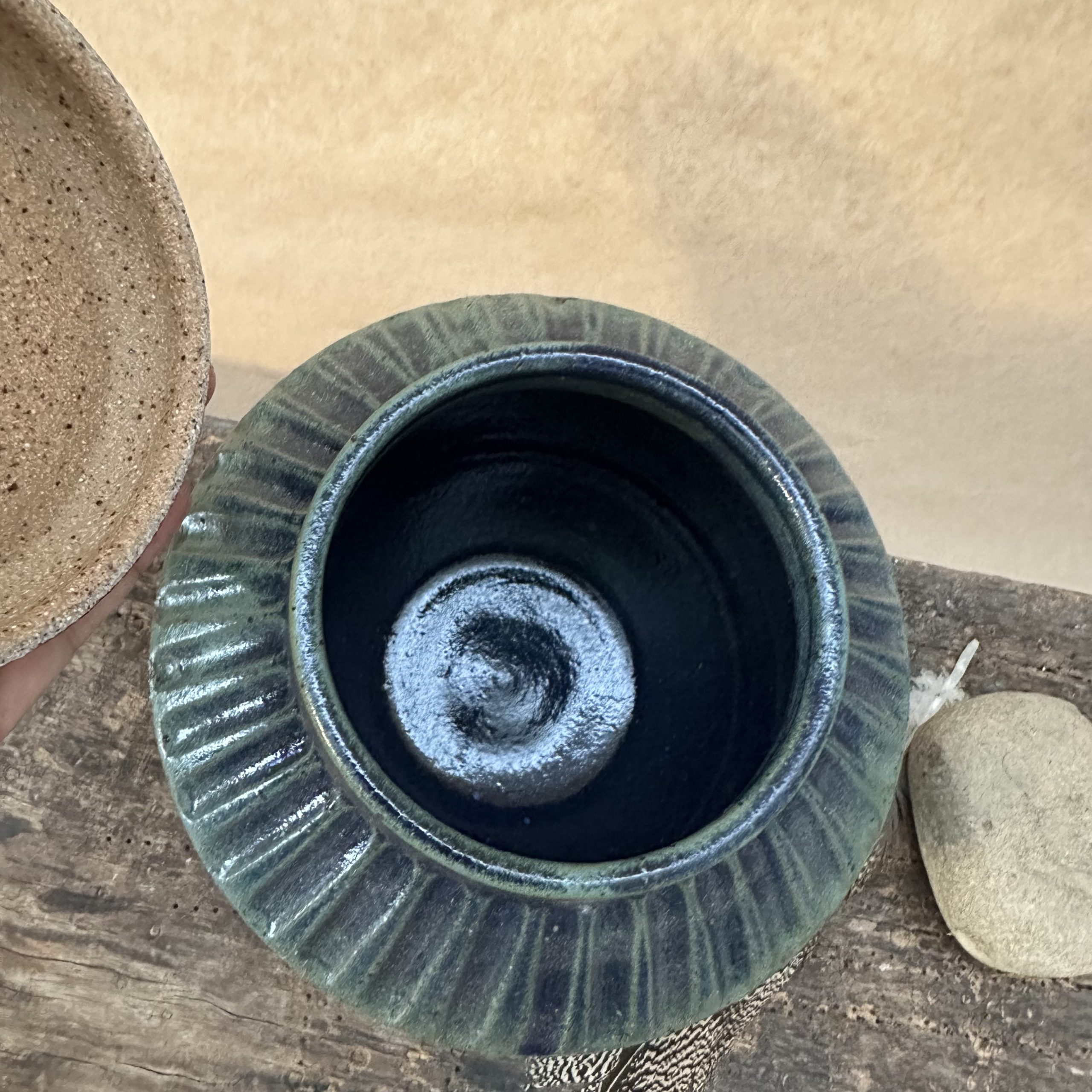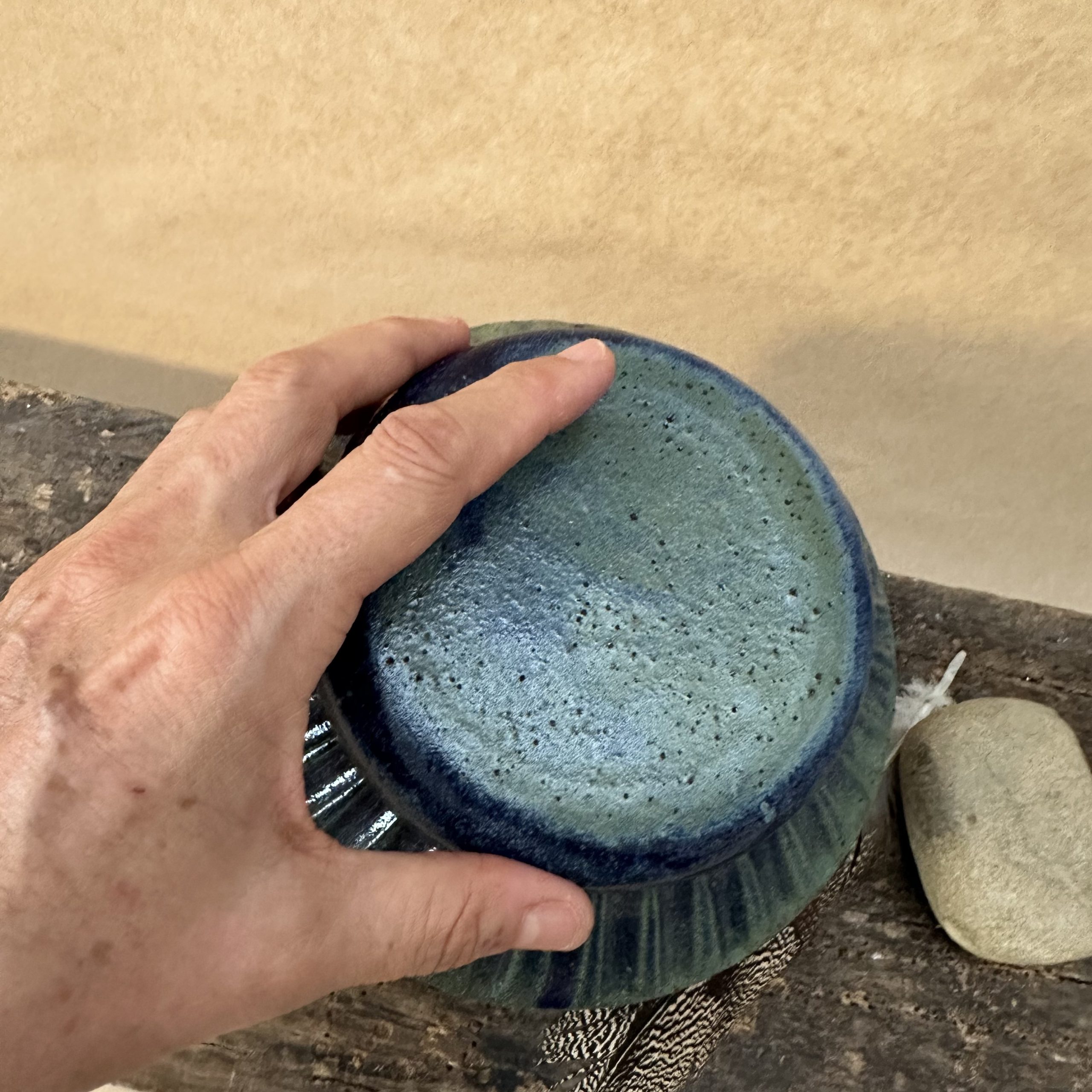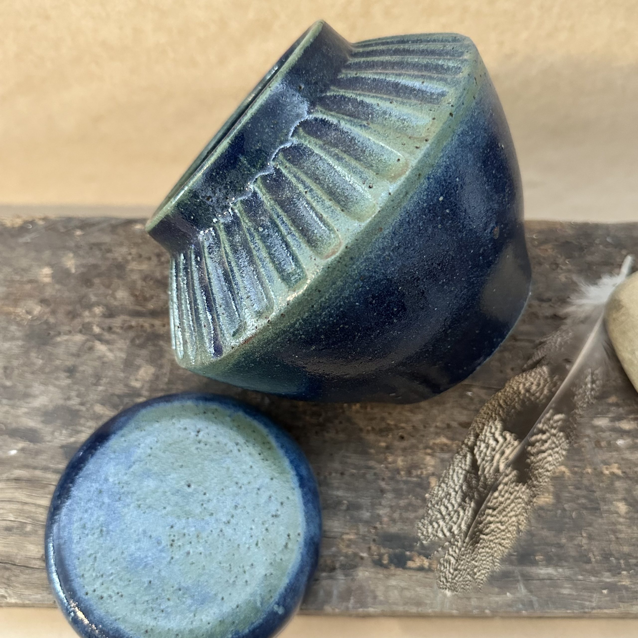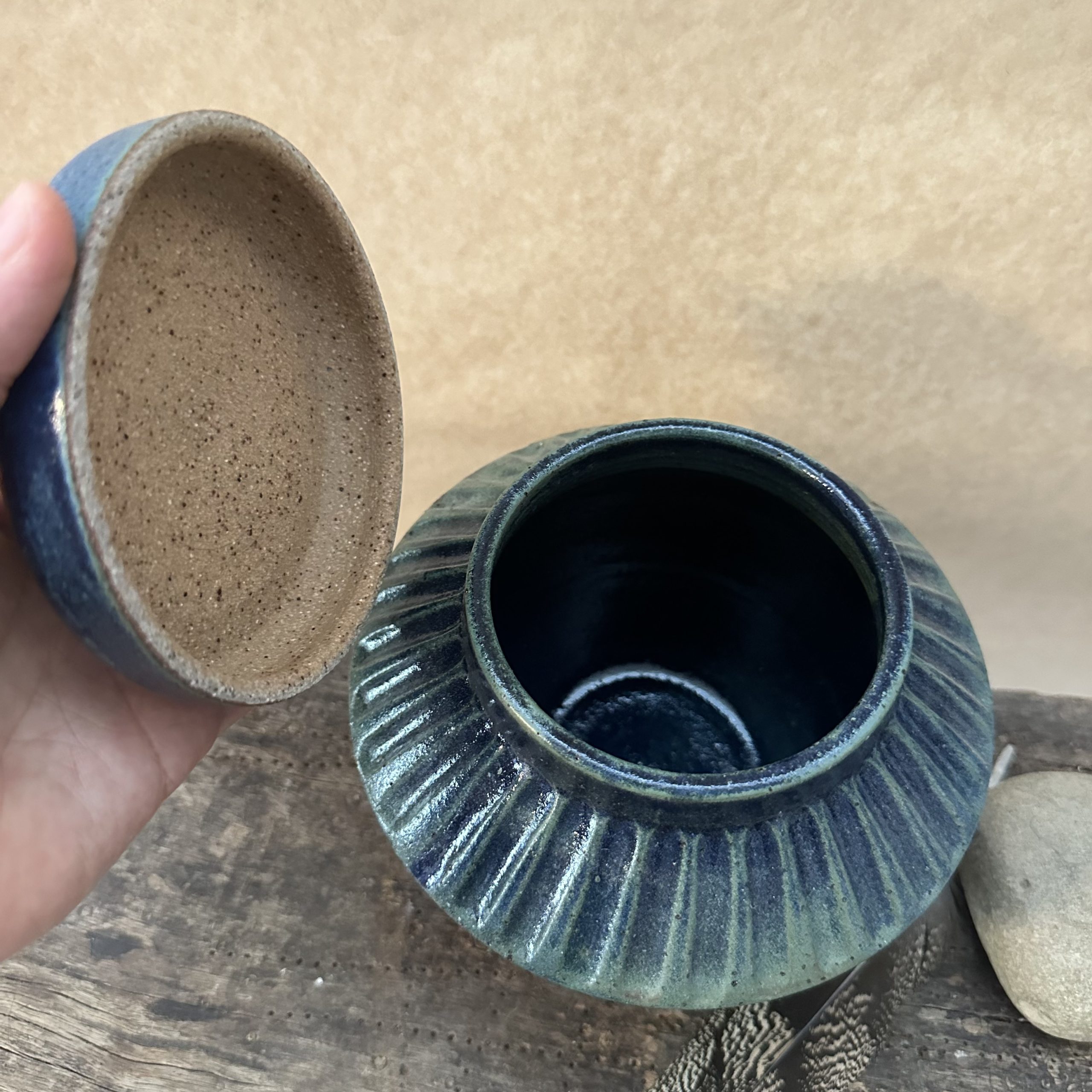 A beautiful one off lidded jar. Can be used to hold all sorts of treasures. Sometimes these jars are used for Cremation Ashes.
