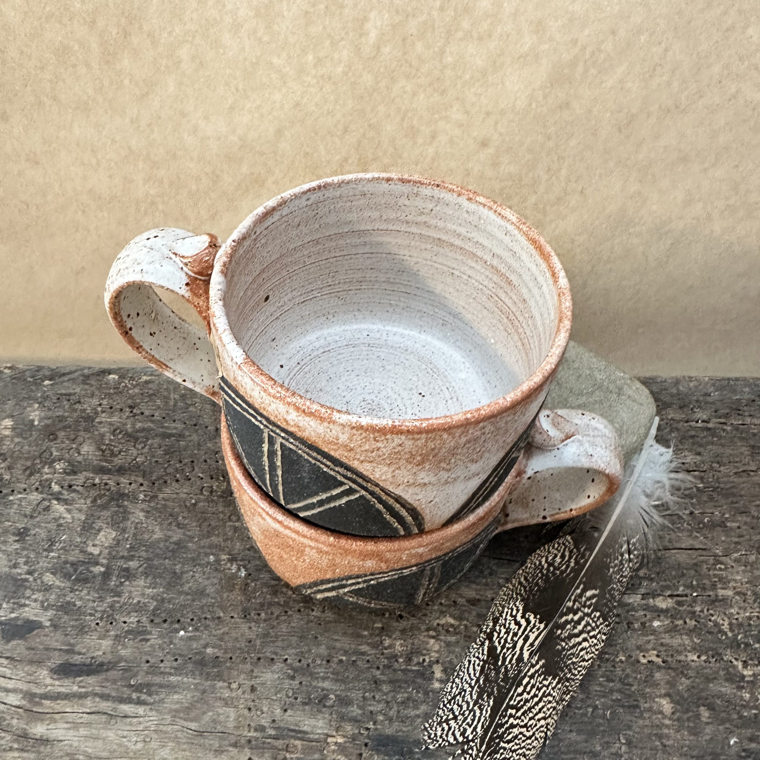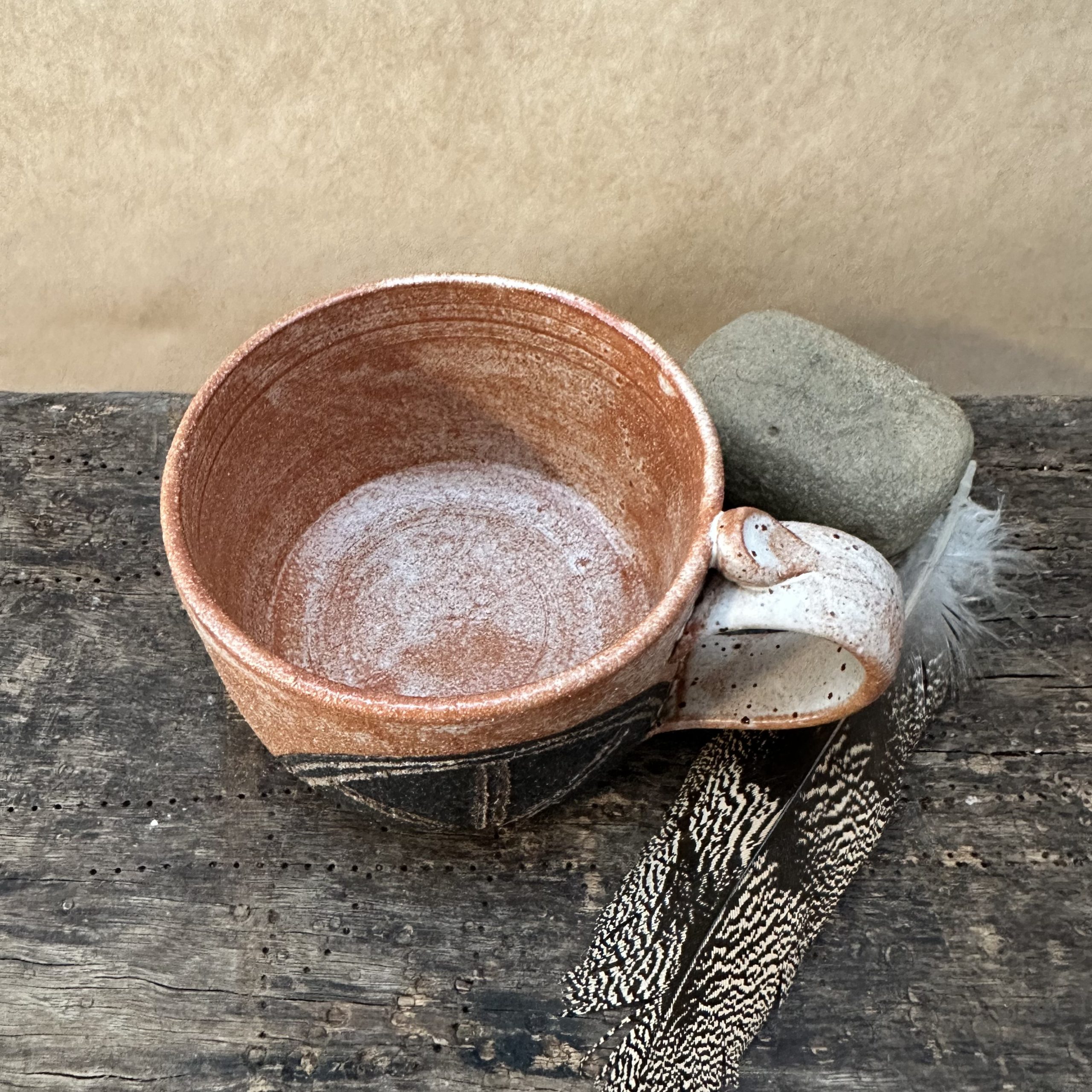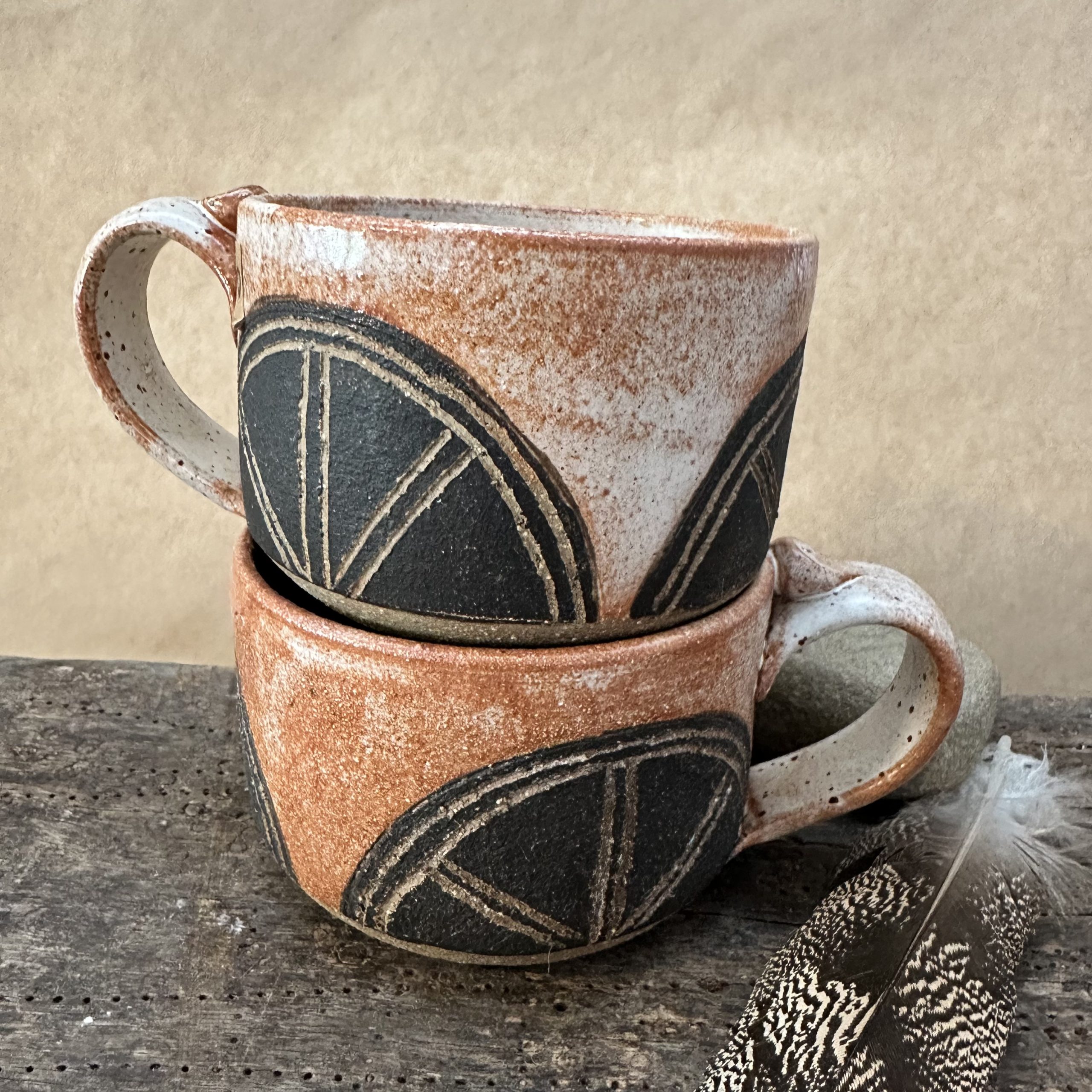 A medium size mug with a wide base that has been carved to enhance your experience. Simple and elegant.