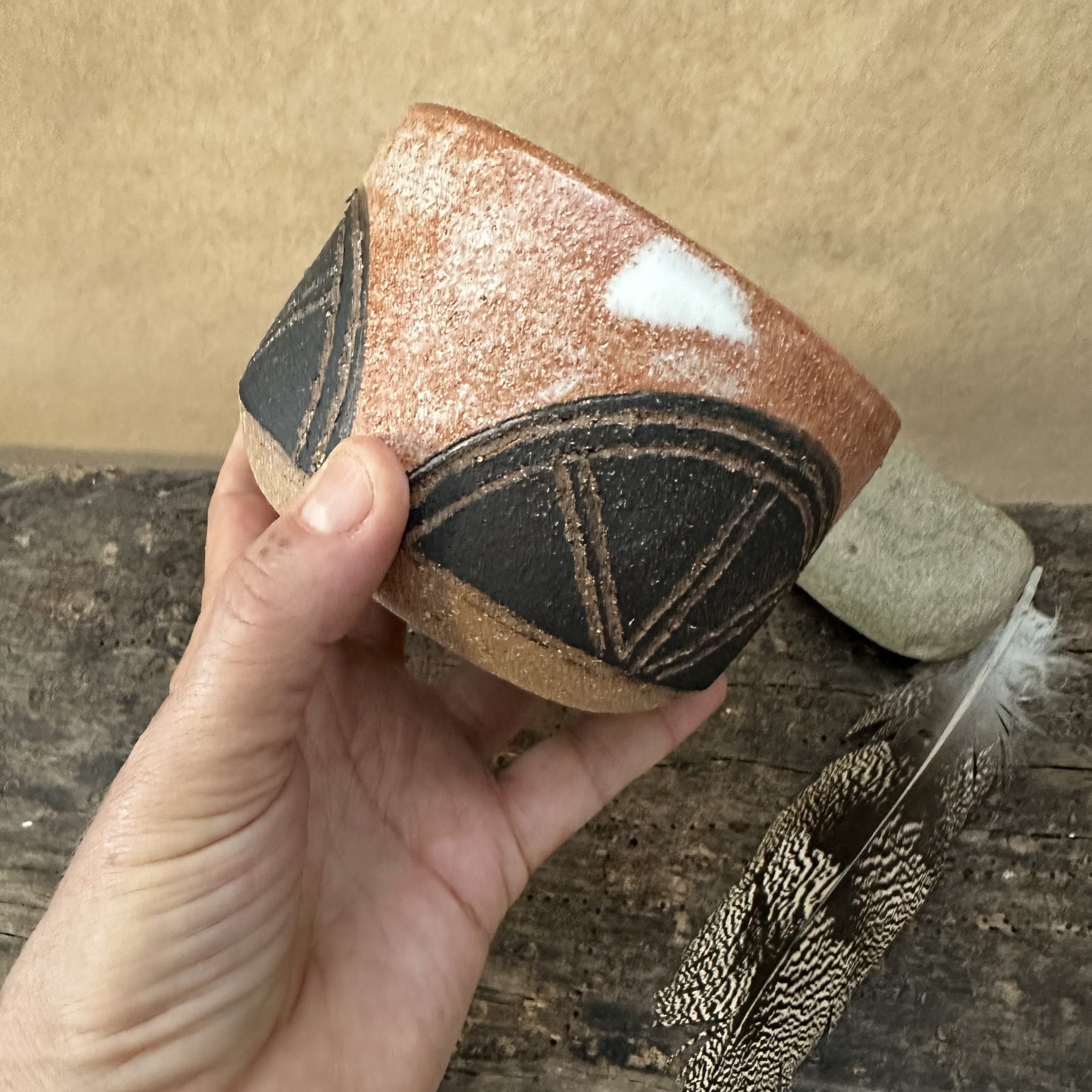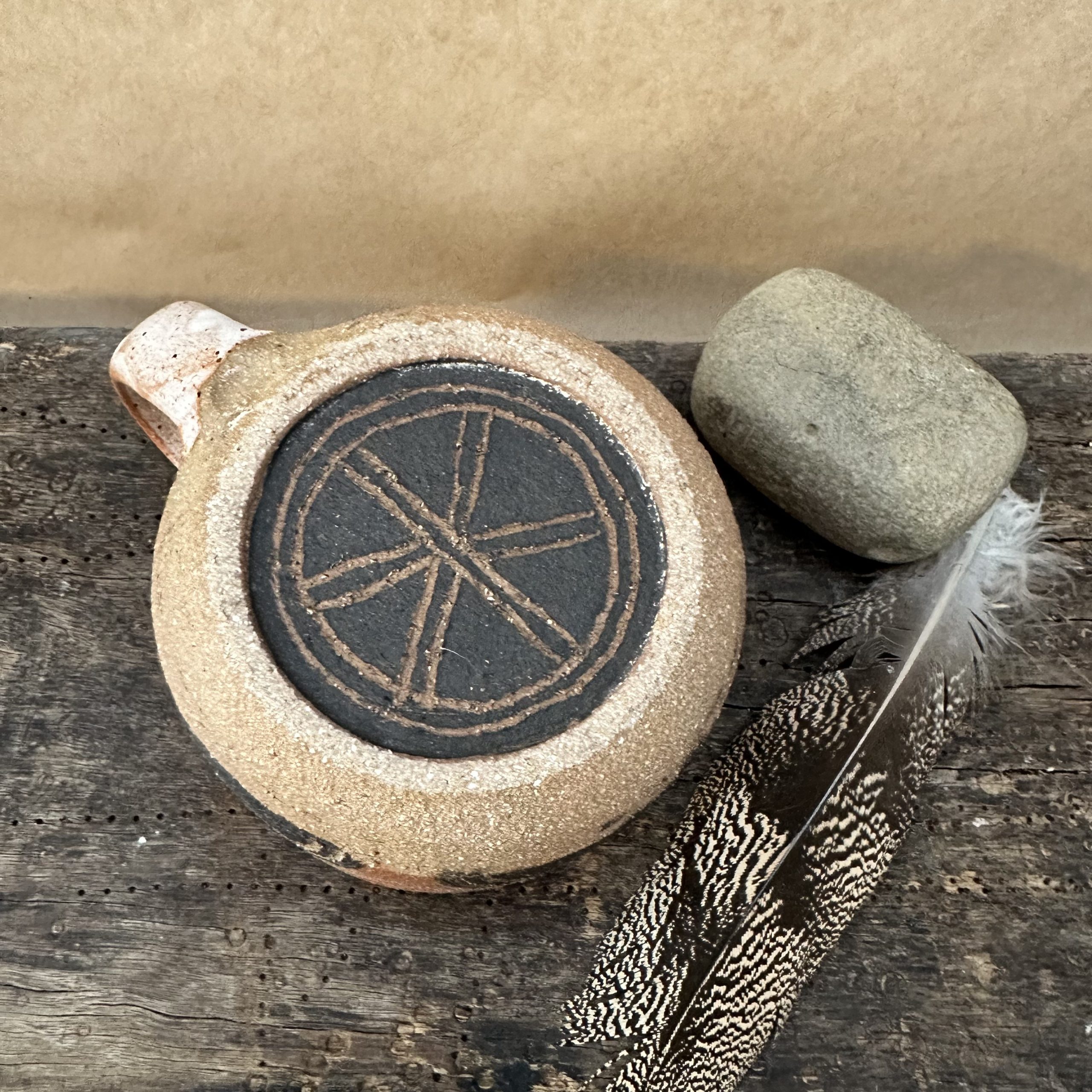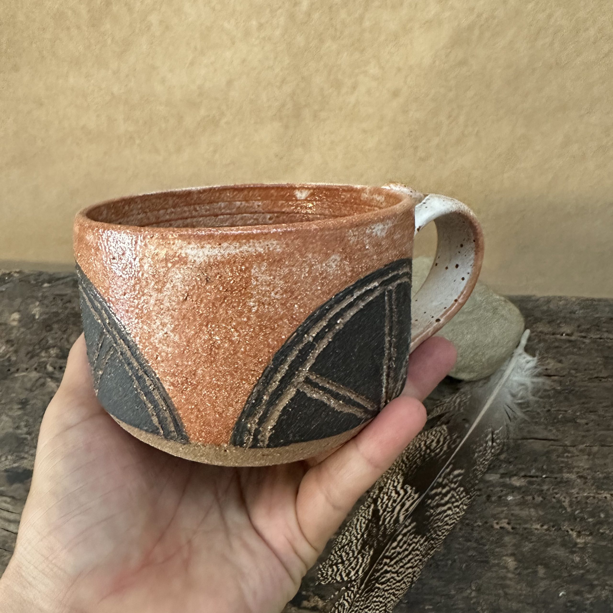 A medium size mug with a wide base that has been carved to enhance your experience. Simple and elegant.