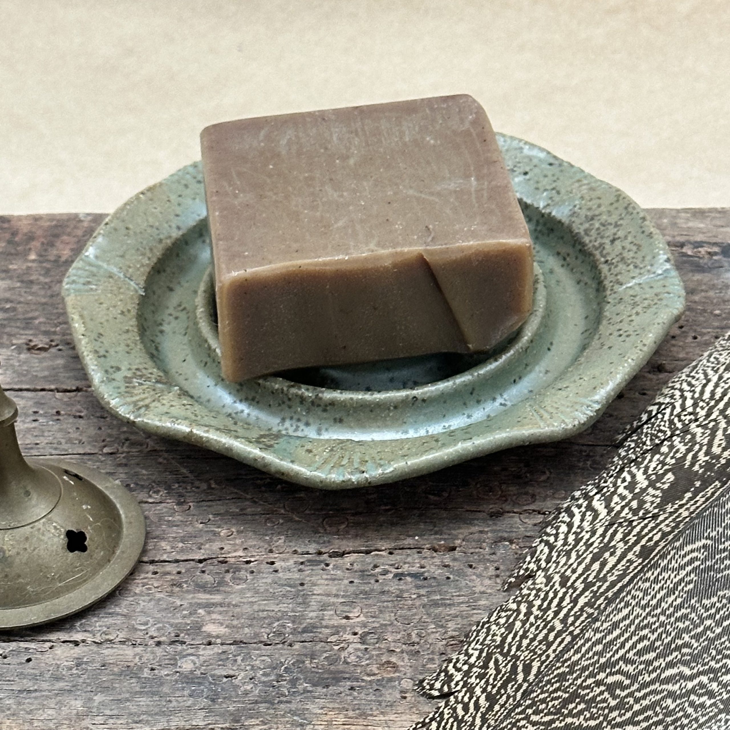 A handmade pottery soap dish.