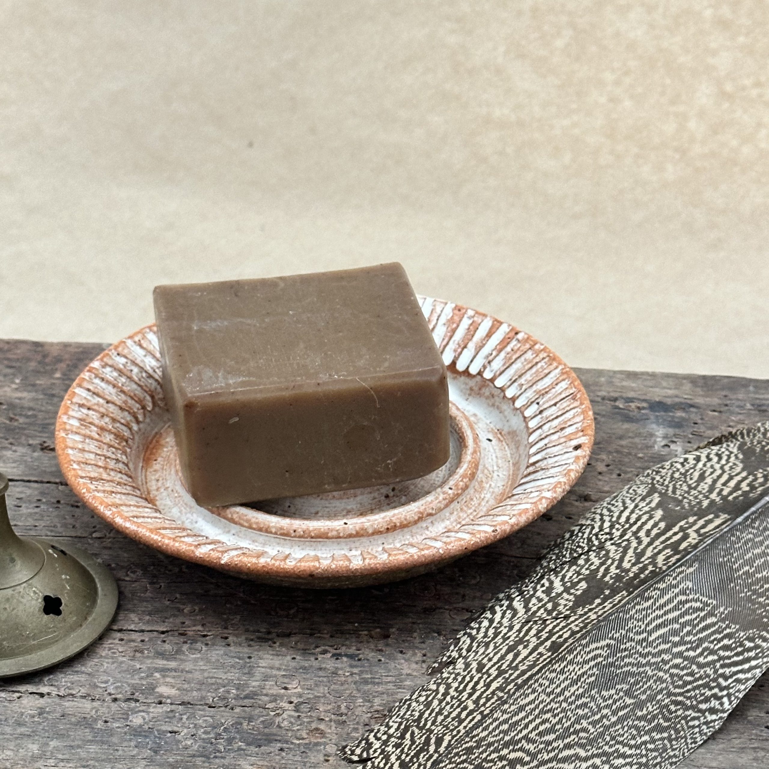 A handmade pottery soap dish.